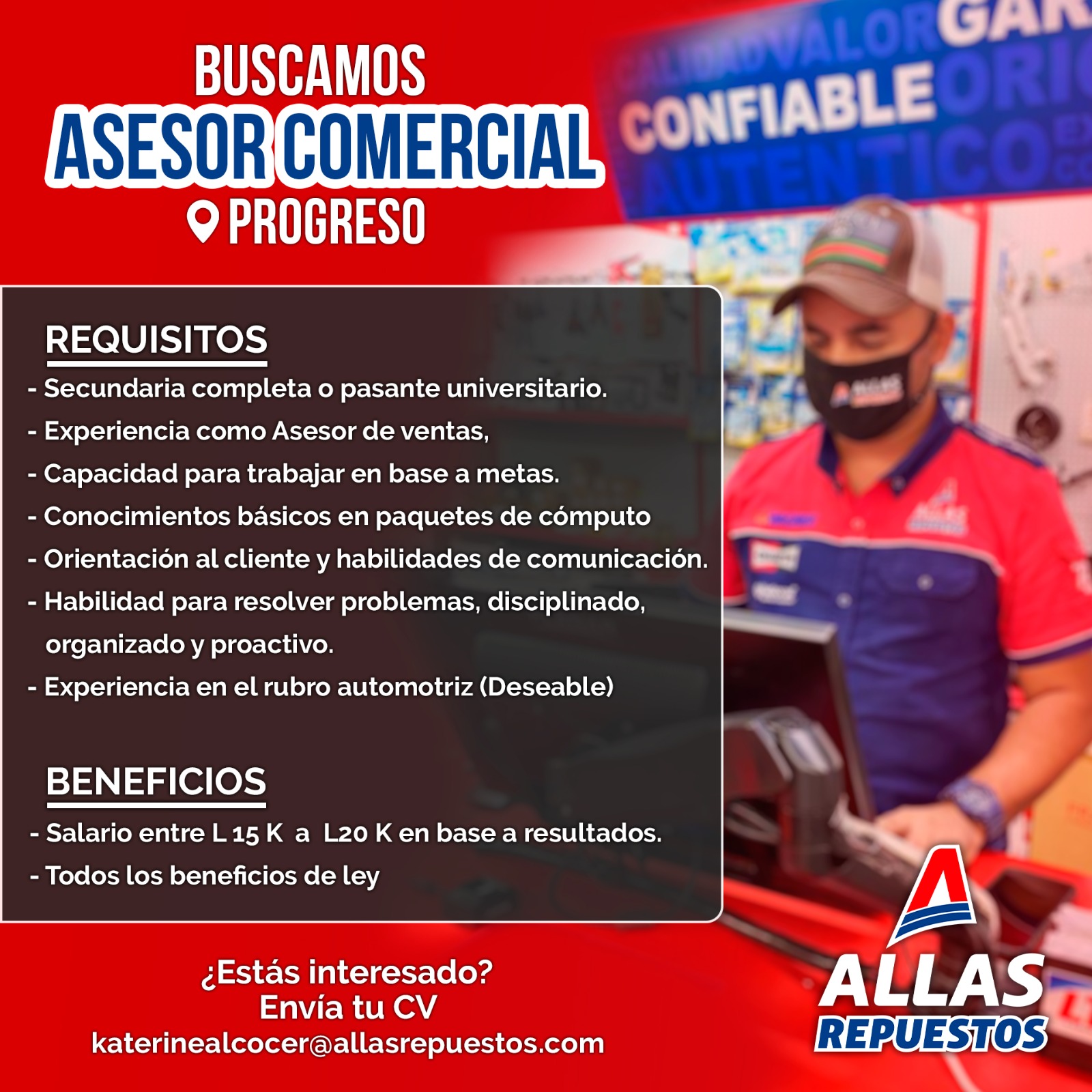 3. Experiencia DESEABLE en el rubro automotriz o conocimientos básicos en repuestos de automóviles.
