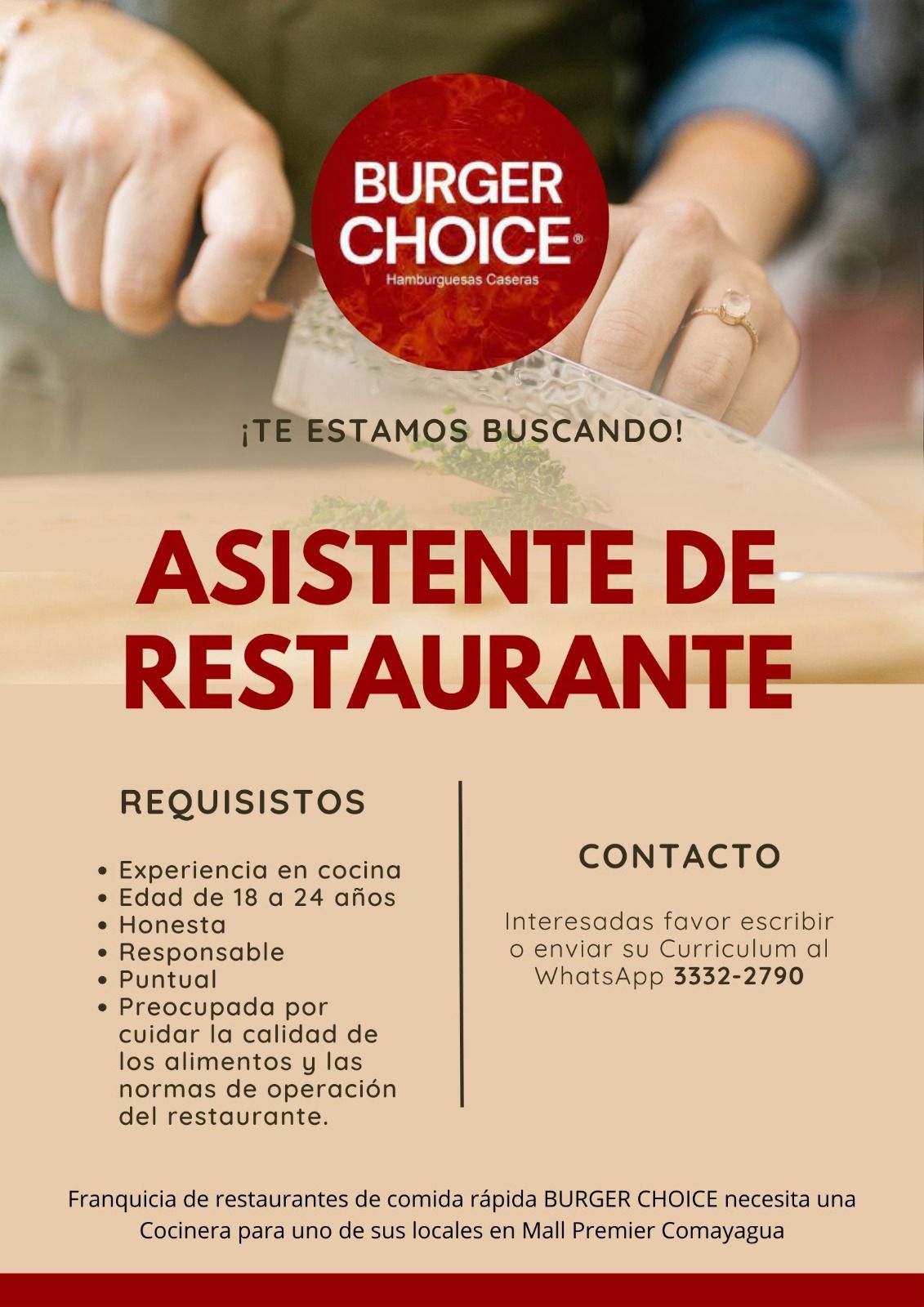 Favor enviar su Currículum a [email protected] o al WhatsApp: 3332-2790