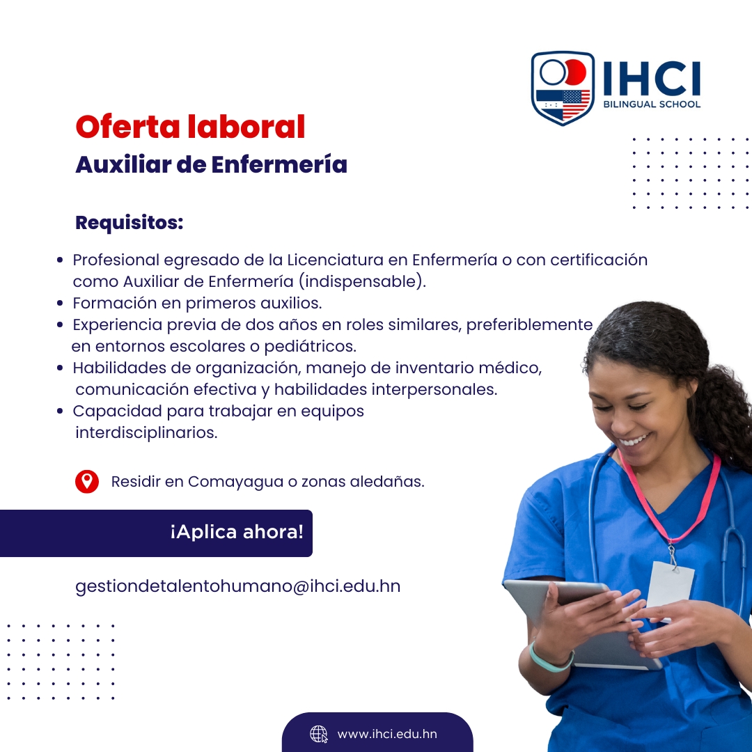 En IHCI, estamos en búsqueda de un/a Auxiliar de Enfermería comprometido/a, empático/a y con vocación de servicio para integrarse a nuestro equipo. Si te apasiona el cuidado de la salud y deseas contribuir al bienestar de niños, niñas y adolescentes en un entorno educativo, ¡esta oportunidad es para ti!
