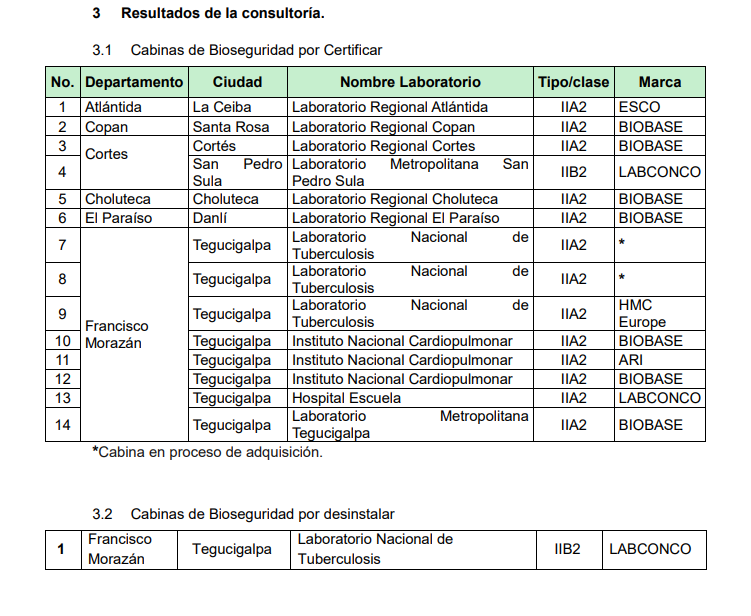 CERTIFICACIÓN DE CABINAS DE BIOSEGURIDAD DE LA RED DE LABORATORIO DE TUBERCULOSIS, HONDURAS 2024.