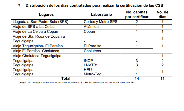 - informe final, que incluya un resumen general de las CSB certificadas por laboratorios y desinstalación de las CSB del Laboratorio Nacional.