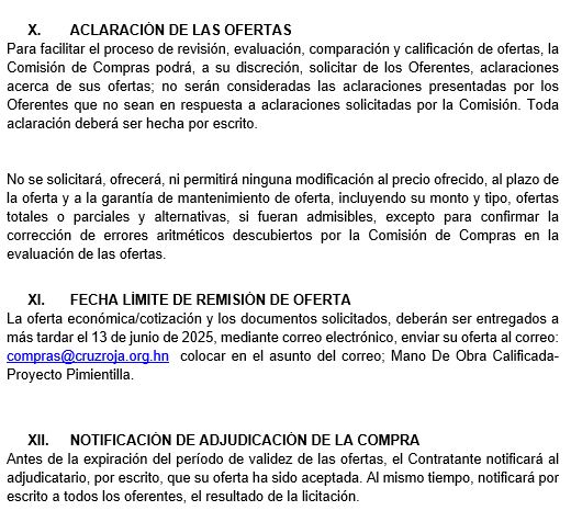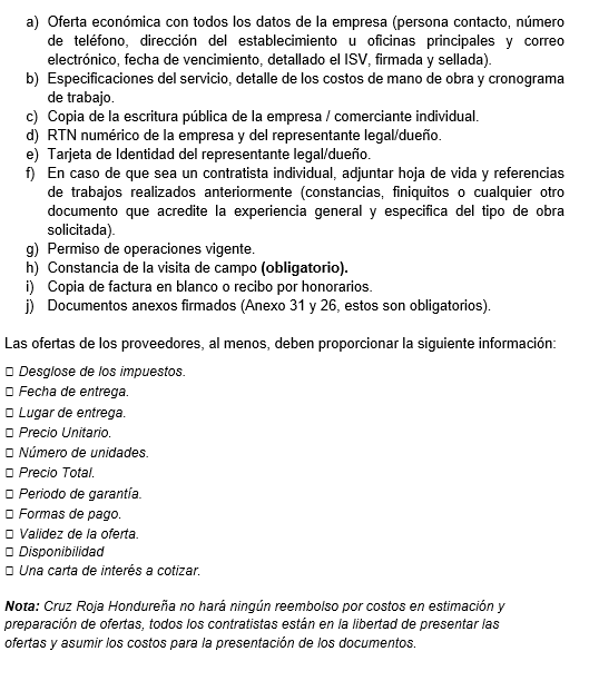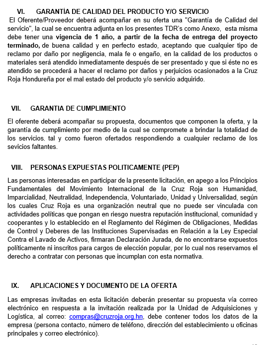 | 3. Oferta económica | Basada en precios reales y competitivos de mercado. | 30% | - 28–30%: Oferta clara, detallada, ajustada al mercado, con buena relación costo-beneficio. - 18–27%: Oferta razonable, pero con detalles poco claros o precios dudosos. - 0–17%: Oferta desproporcionada (muy alta o muy baja) o mal fundamentada. |