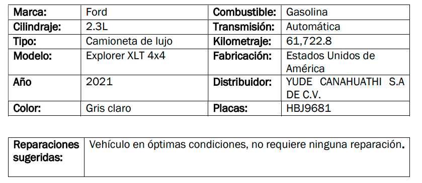 Asunto del correo: "SUBASTA FORD EXPLORER 2021, HN1939"