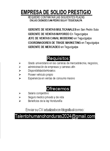 Direccion: Gran Central Metropolitana, San Pedro Sula