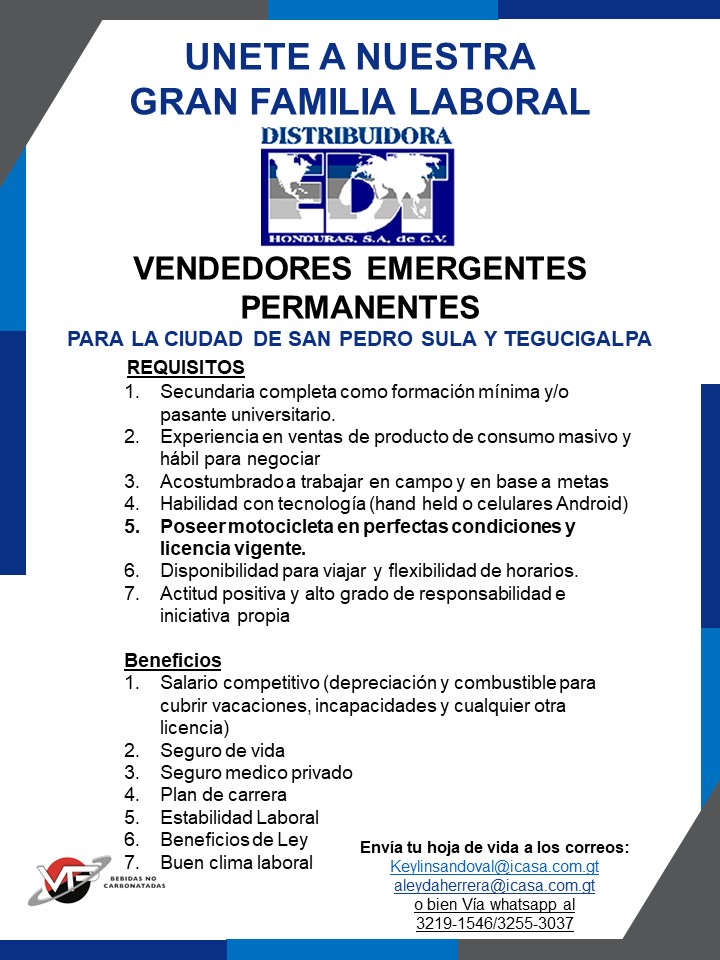 De 18 a 30 años, secundaria completa con titulo, con o sin experiencia, disponibilidad inmediata y de horarios son rotativos, solo aplican personal viviendas dentro de zona céntrica de sps