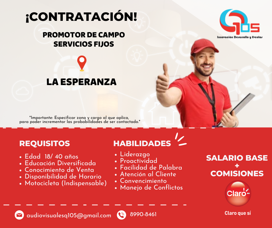 Interesados enviar su Curriculum al número 8990-8461. o al correo [email protected]