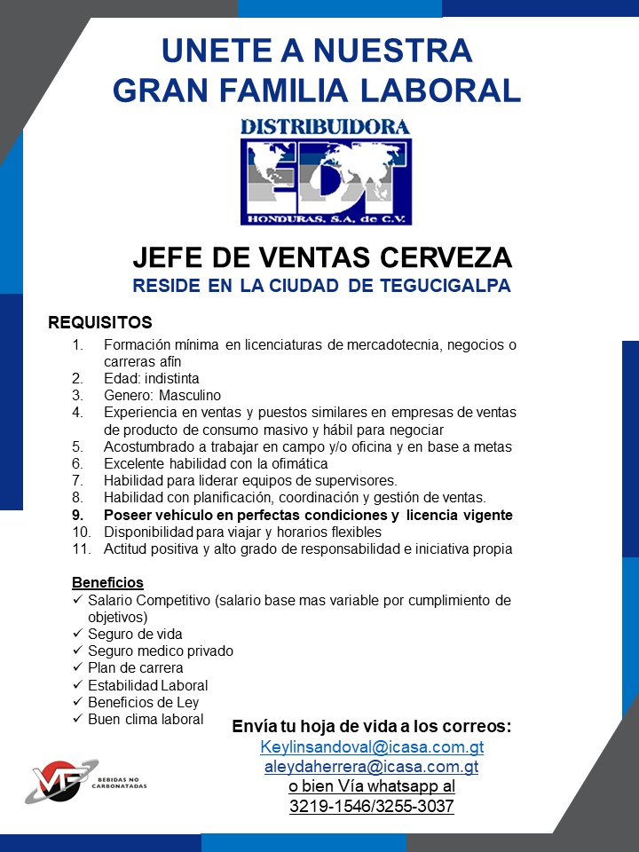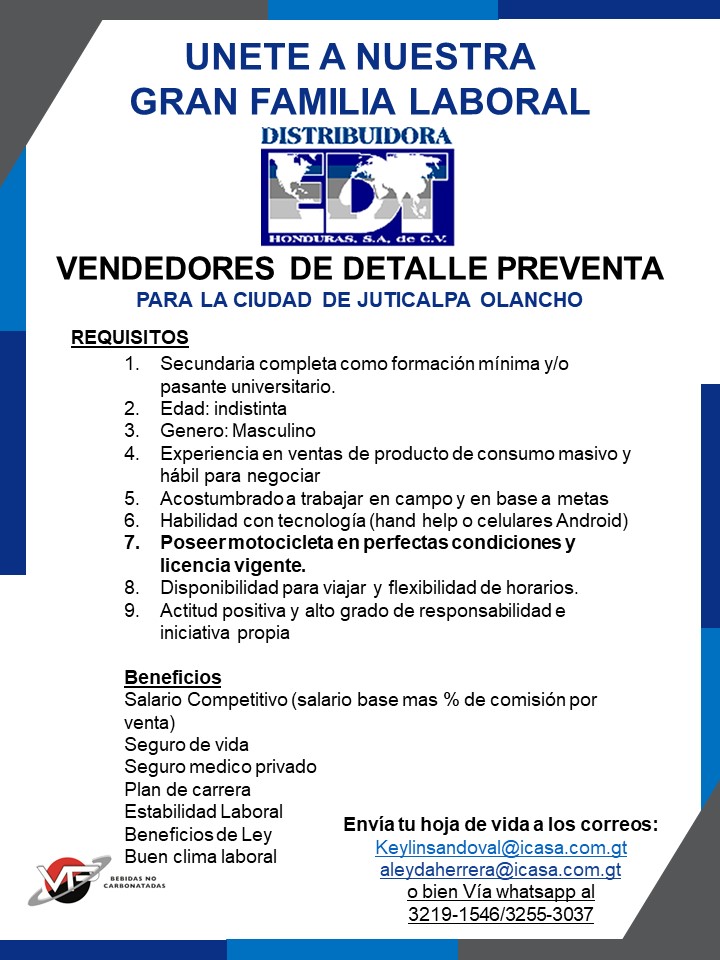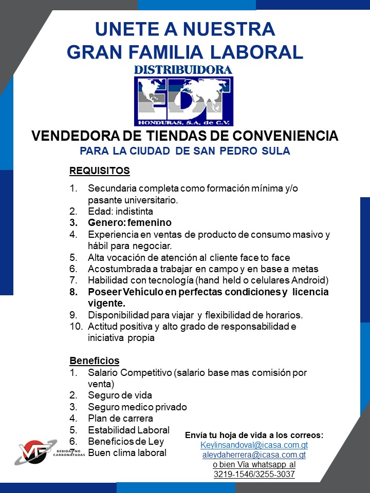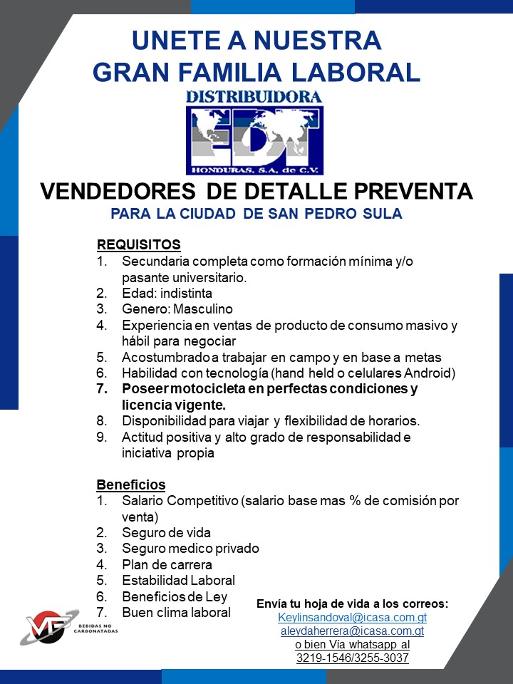 Salario: Base 16,856.50 mas pago de comisión por cumplimiento de metas