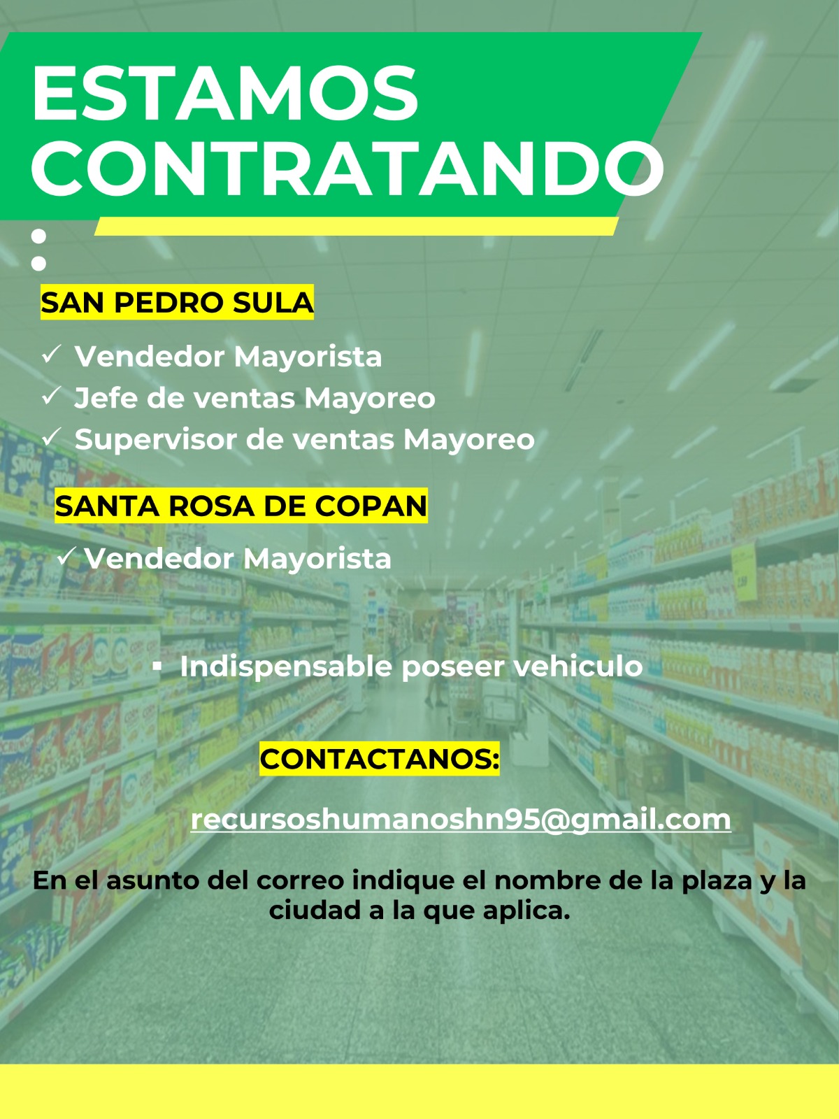 Buscamos Ejecutivo de Ventas Mayoreo, occidental, Litoral atlántico