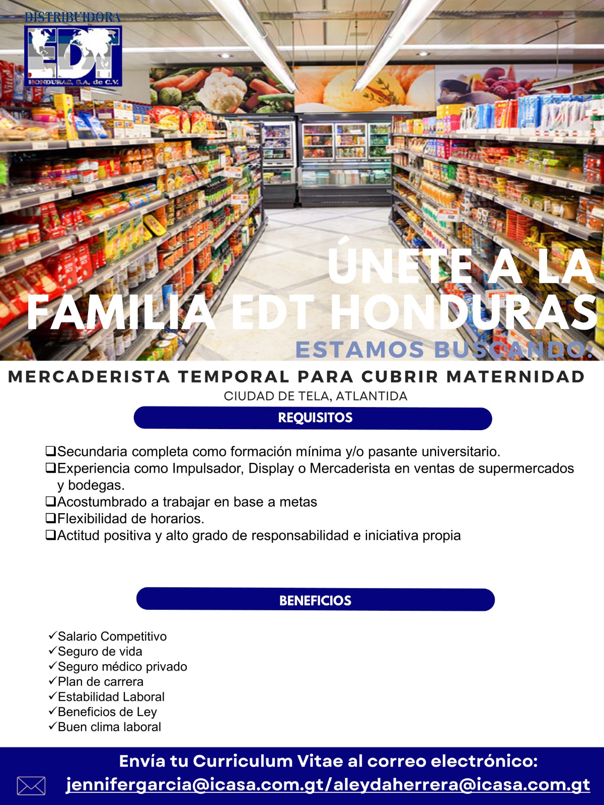 Si estas interesado compártenos tu CV al 9361-7762, indicando la ciudad de la cual aplicas
