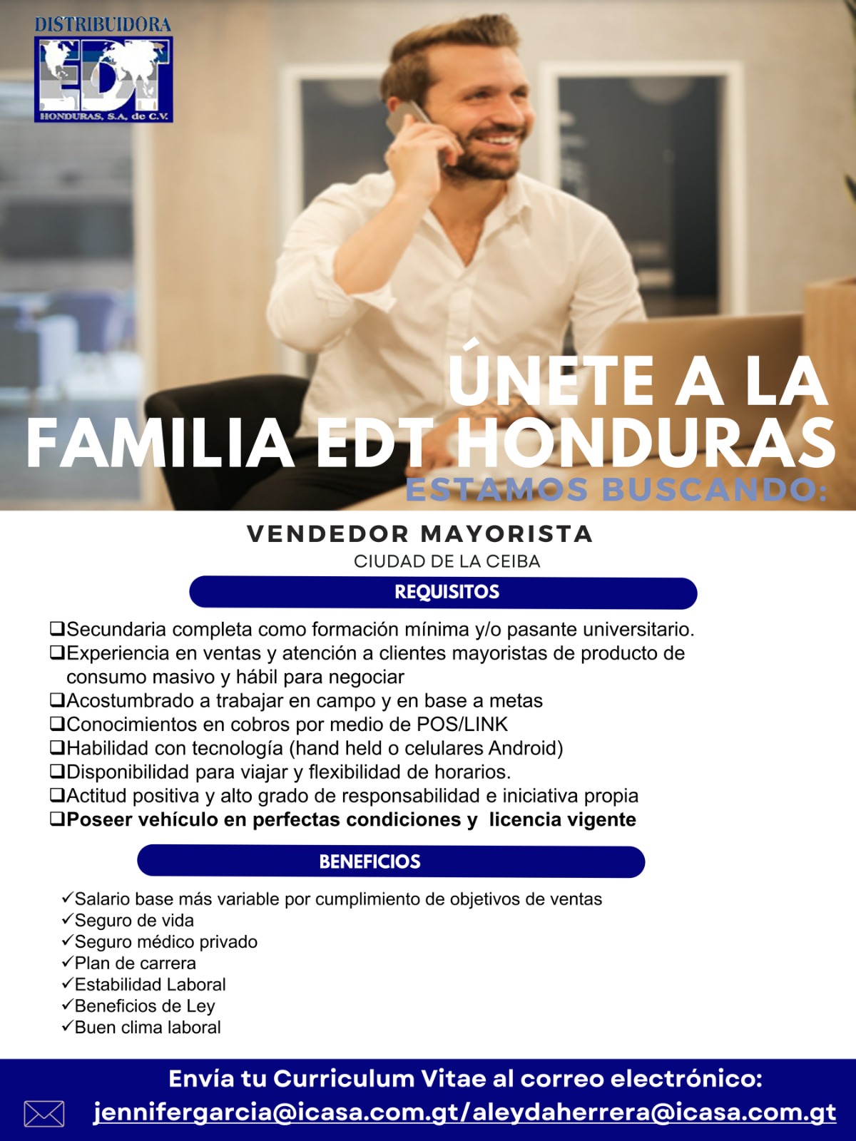 Competencias requeridas: Orientación al logro, orientación al cliente, trabajo en equipo, comunicación asertiva.