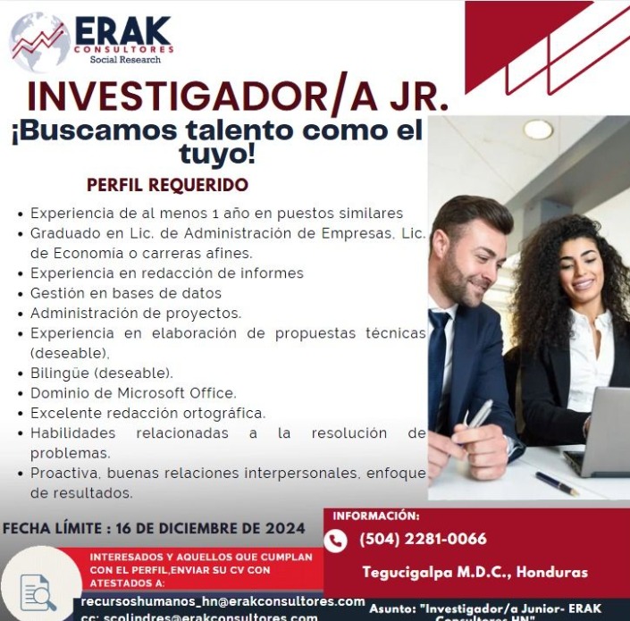La Fundación de la Universidad Nacional Autónoma de Honduras (FUNDAUNAH) en coordinación con el Centro de Investigaciones Genéticas de la UNAH invita a profesionales interesados a presentar su aplicación para optar a la siguiente plaza: