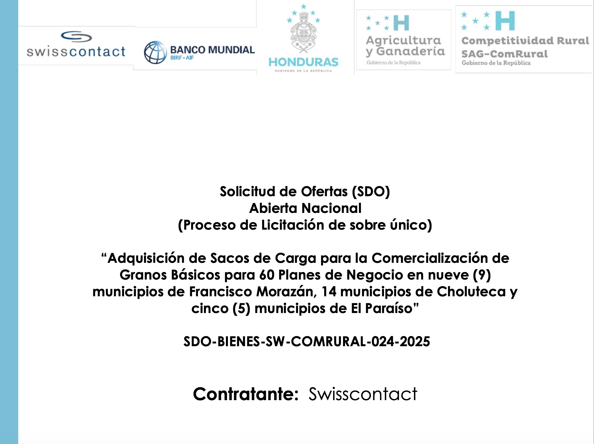 Adquisición de Sacos de Carga para la Comercialización de Granos Básicos