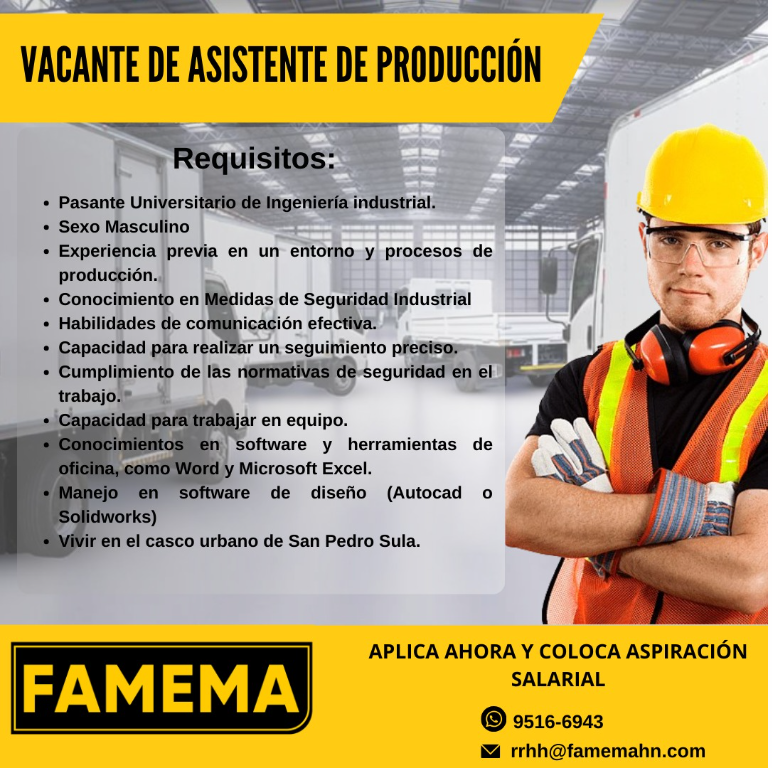 El Asistente de Producción realiza una variedad de tareas administrativas y de apoyo en la cadena de producción para contribuir al éxito general de la empresa. Asegurándose que todas las actividades producción que le han sido asignadas, se cumplan de manera efectiva de acuerdo a las directrices del jefe inmediato.