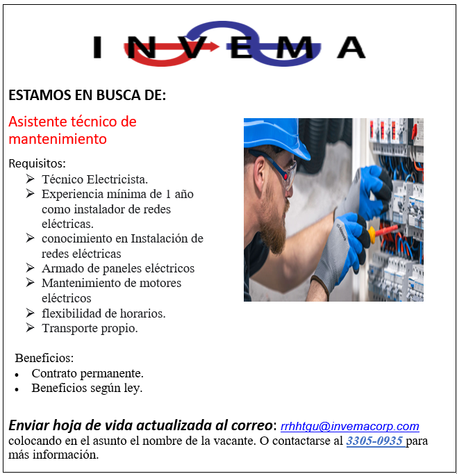 - 1 año de experiencia en electricidad industrial e instalador de redes eléctricas.