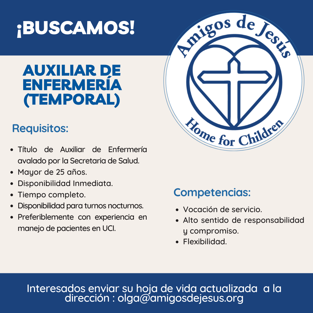 ¡Vacante para Auxiliar de Enfermeria, Temporal!