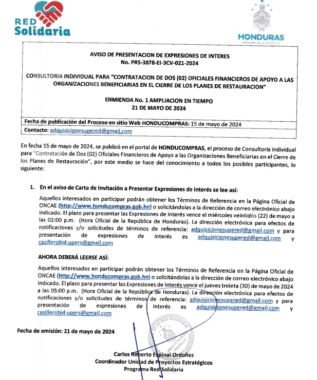 El Gobierno de Honduras ha designado al Programa de la Red Solidaria como Organismo