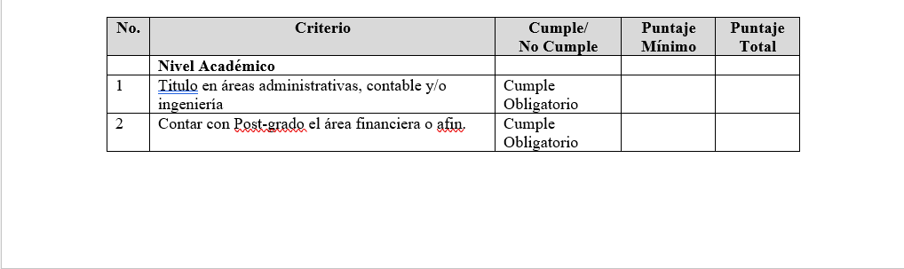- Titulo en áreas administrativas, contable y/o ingeniería