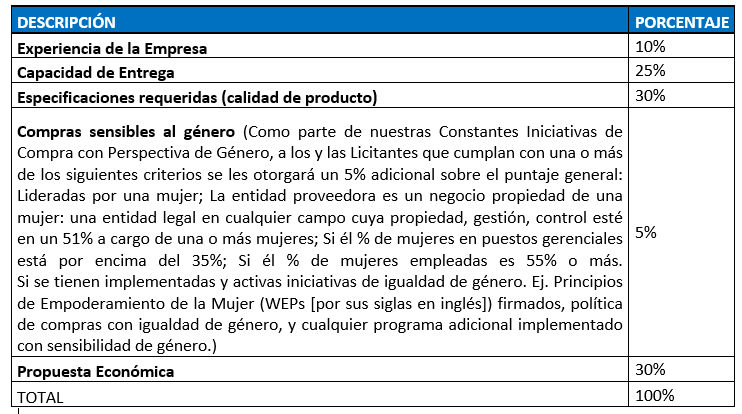 “Se alienta a la participación de negocios propiedad de mujeres y de compañías que participan o promueven activamente la igualdad de género y el empoderamiento de la mujer en el lugar de trabajo