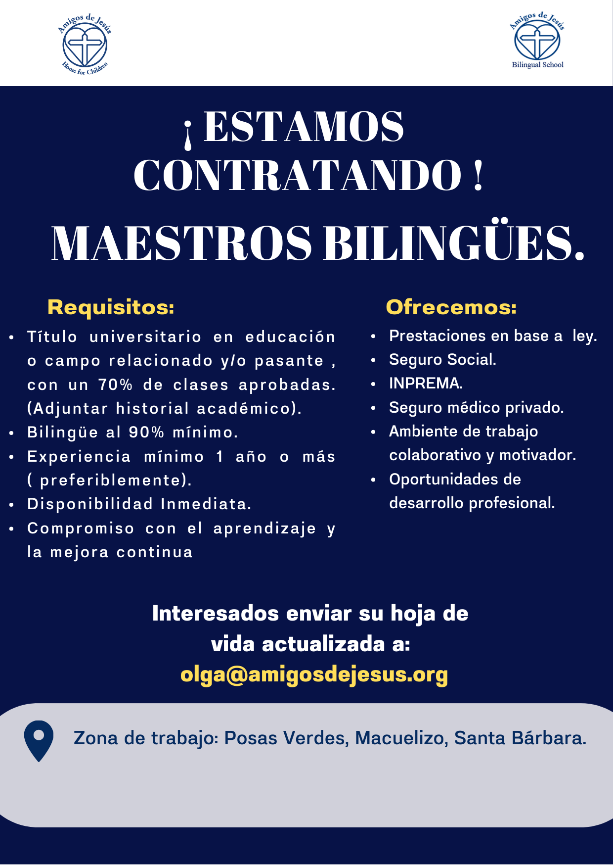 ¿Tienes pasión por la educación y el desarrollo de los estudiantes? ¡Esta es tu oportunidad de unirte a nuestro equipo de maestros!
