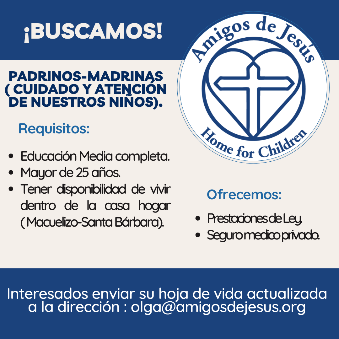 Estamos en búsqueda de personas comprometidas y responsables para unirse a nuestro equipo como Padrinos y Madrinas. Esta posición es clave para el cuidado, apoyo diario y atención de niños, niñas y adolescentes (NNA), fomentando y manteniendo un entorno seguro, protector y propicio para su desarrollo integral.