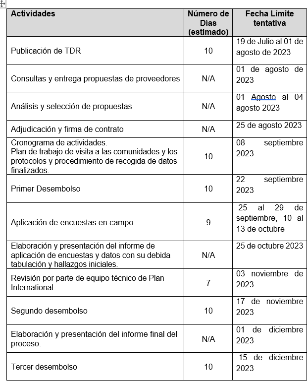 [1] El tamaño de las muestras será revisados y finalizados por Plan International y la firma consultora como parte del proceso inicial.