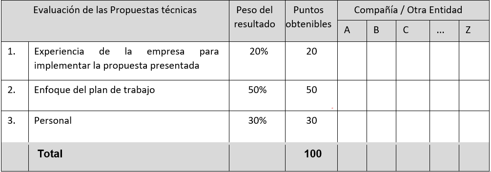 Solo se aceptarán las propuestas que lleguen en las fechas establecidas en estos TDR.