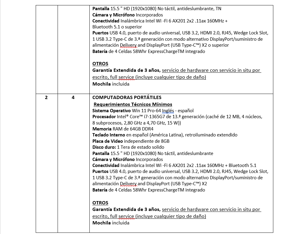 El oferente deberá tener en consideración que según normativa USAID (Sección 889) ACDI VOCA no adquirirá equipos que utilicen productos de telecomunicaciones y videovigilancia de las siguientes compañías: Huawei Technologies Company, ZTE Corporation, Hytera communications Corporation, Hangzhou Hikvision Digital Technology Company o Dahua Technology Company, o cualquier subsidiaria o afiliada de las mismas, de conformidad con FAR 52.204-25 Prohibition on Contracting for Certain Telecommunications and Video Surveillance Services or Equipment.