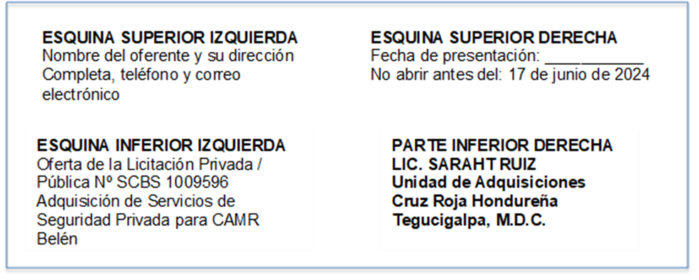 - La Cruz Roja Hondureña no considerará ninguna oferta que llegue con posterioridad al plazo límite para la presentación de ofertas, por lo que no se recibirán ofertas después de las 23:59, del lunes 17 de junio 2024, en virtud de las fechas indicadas en la sección 4.