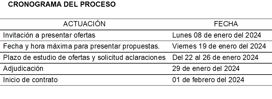 FECHA MÁXIMA PARA PRESENTAR OFERTAS: VIERNES 19 DE ENERO DEL 2024