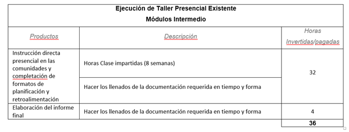 Nota: Este detalle representa lo mínimo requerido para cada una de las disciplinas que se impartirán en las comunidades de intervención.