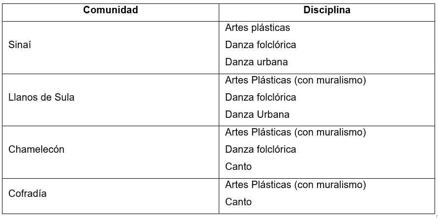 - Participación constructiva en la socialización del Proyecto y su componente de Arte Comunitario incluyendo ser parte de los procesos de formación en las áreas de: Estrategia Operacional, Acompañamiento psicosocial y sistematización del programa.