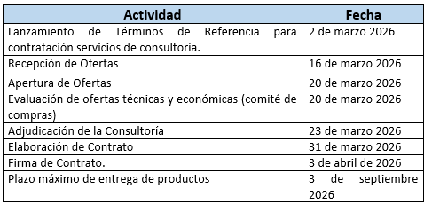 Las propuestas deben ser enviadas con fecha máxima el día 16 de marzo 2026 a las 3:00 p.m. siendo rechazadas las ofertas que se reciban posterior a dicha fecha y hora.
