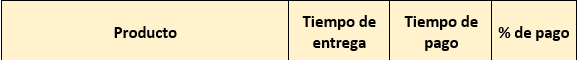A continuación, se presenta una relación de productos y porcentaje de pago.