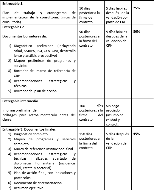 Los pagos se efectuarán de manera progresiva, sujetos a la entrega y aprobación de los productos establecidos en el contrato, si los productos cuentan con aceptación de los involucrados en el proceso. por parte de la Cruz Roja Hondureña (CRH).