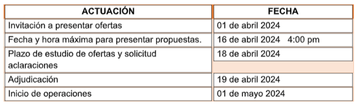 FECHA MÁXIMA PARA PRESENTACIÓN DE OFERTAS: 16 DE ABRIL DEL 2024 A LAS 4:00 P.M.