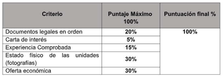 El proveedor deberá presenta imágenes o fotografías de las unidades de transporte terrestre (Motor, pasillos en buen estado, asientos, puertas y ventanas) que serán utilizados para el servicio licitado, para ser validados por parte de Cruz Roja Hondureña su estado actual.
