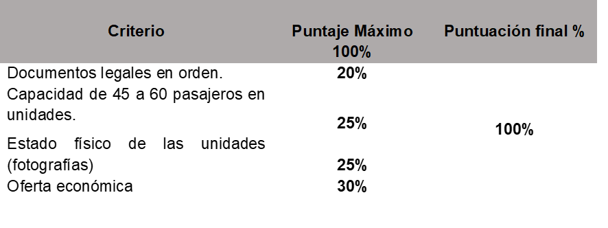 e) Fotografías internas y externas del estado físico las unidades (Las unidades deberán de tener una capacitad para 45 a 60 pasajeros).