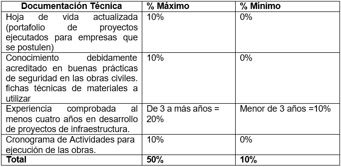 - Conocimiento en buenas prácticas de seguridad en las obras civiles (mediante portafolio de trabajo u hoja de vida).