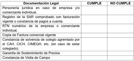 Nota: Cruz Roja Hondureña no hará ningún reembolso por costos en estimación y preparación de ofertas, todos los contratistas están en la libertad de presentar las ofertas y asumir los costos para la presentación de los documentos, no es necesario incluir copias, solo requerimos un paquete en original de todos los documentos antes mencionados.