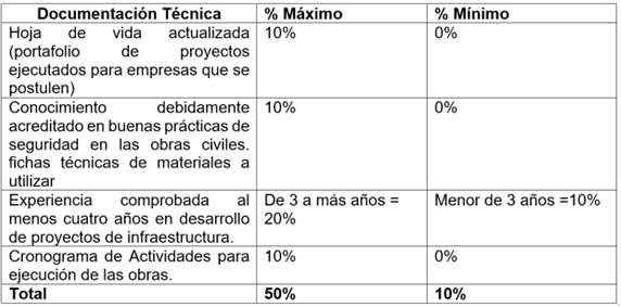 El comité de compras, será el responsable de abrir los sobres de las cotizaciones y hará la selección tomando en consideración las siguientes valoraciones y puntajes: