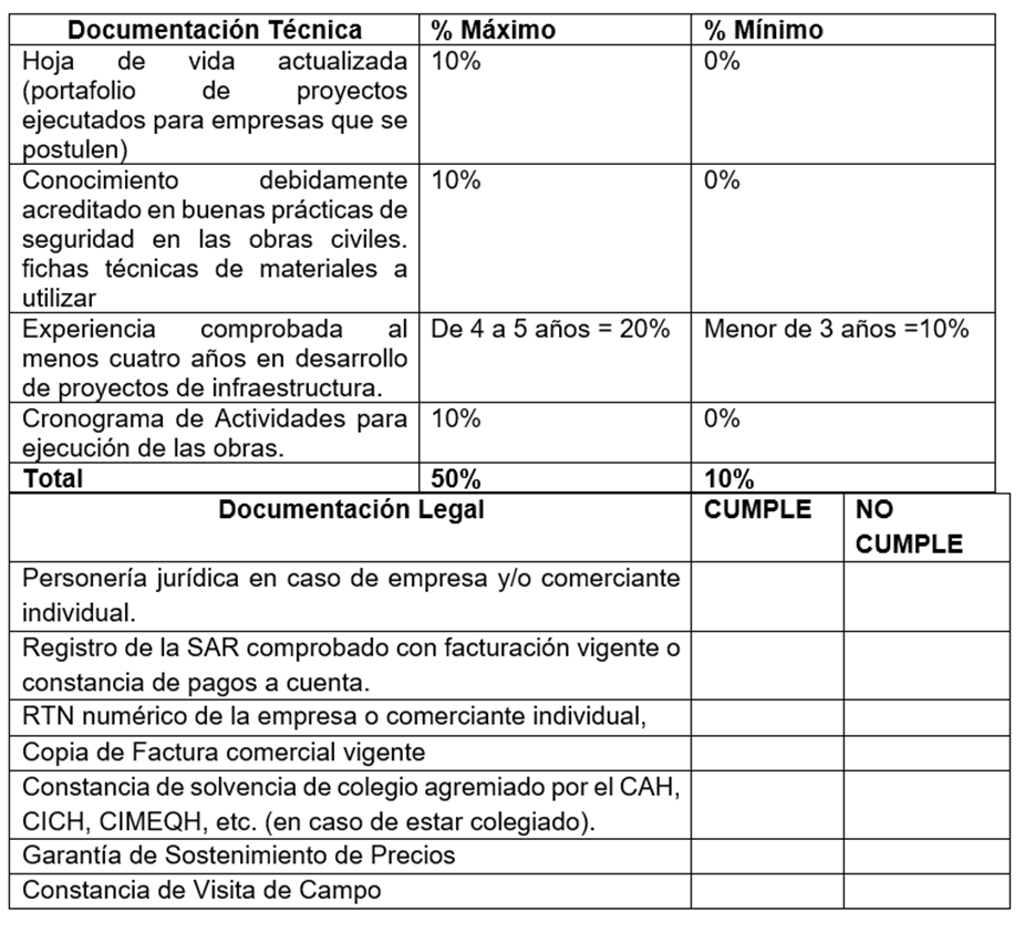 Nota: Cruz Roja Hondureña no hará ningún reembolso por costos en estimación y preparación de ofertas, todos los contratistas están en la libertad de presentar las ofertas y asumir los costos para la presentación de los documentos, no es necesario incluir copias, solo requerimos un paquete en original de todos los documentos antes mencionados.