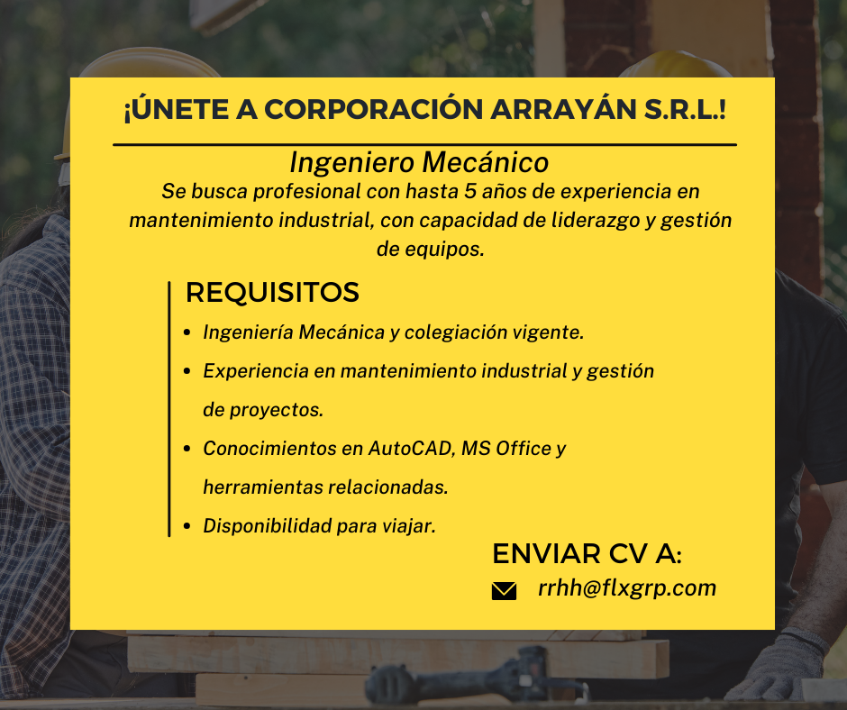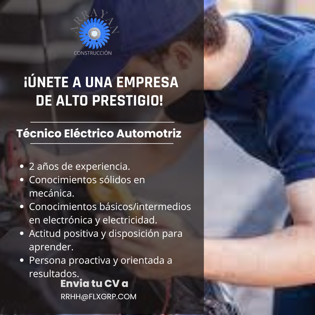 - Experiencia mínima de 1 año en mantenimiento de motores eléctricos Industriales, instalador de redes eléctricas.