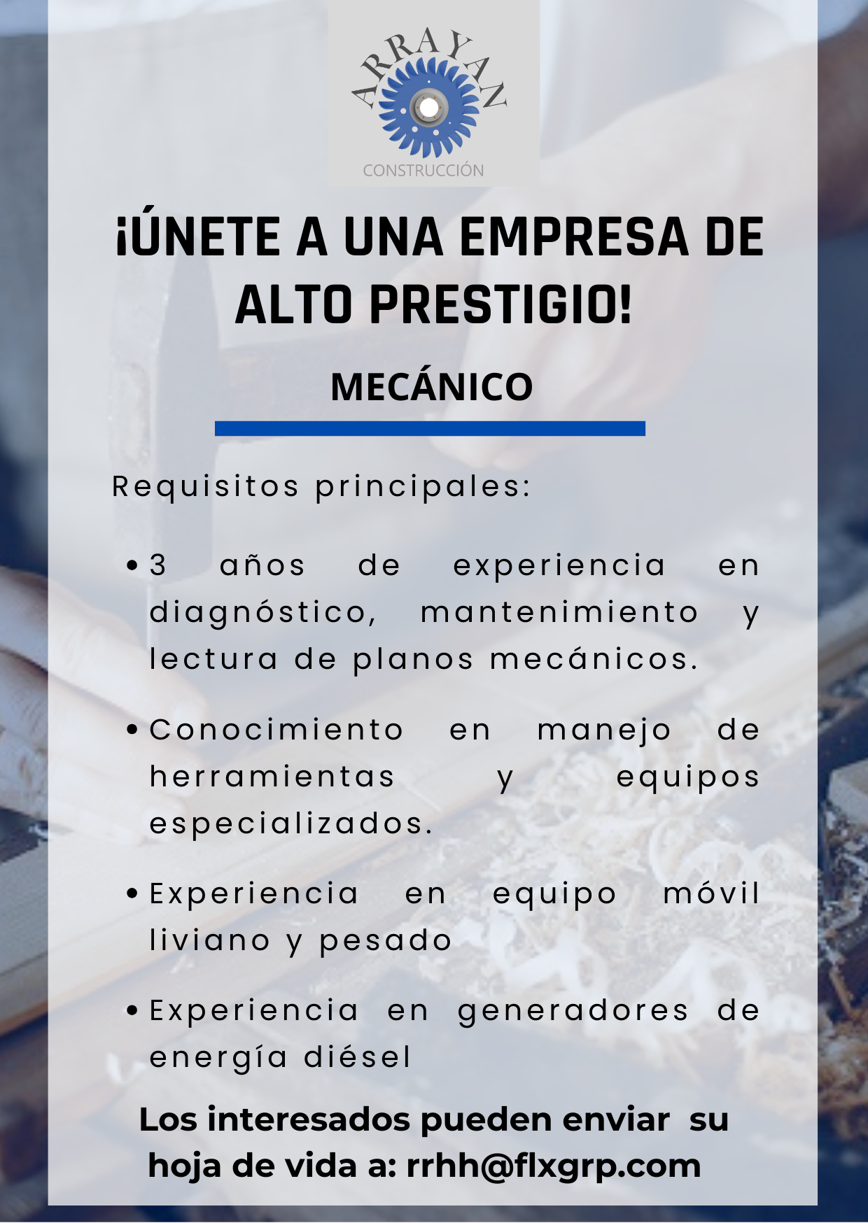 Mínimo 4+5 años de experiencia en la reparación de piezas de equipo pesado, tanques, cisternas, chasis, remolques (indispensable),
