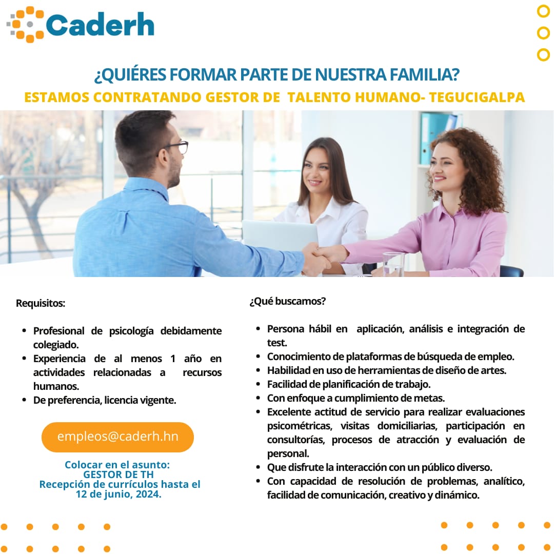 Asociación PASMO Honduras desea contratar a una persona talentosa, con sede en San Pedro Sula para la posición de:
