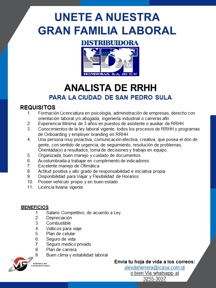 Enviar cv especificando vacante a la que aplica, a [email protected] o al teléfono 32309175