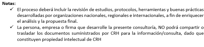 Nota: Los pagos solo se realizarán si los productos cuentan con aceptación de coordinación de proyecto y Gerencia de Protección de CRH.