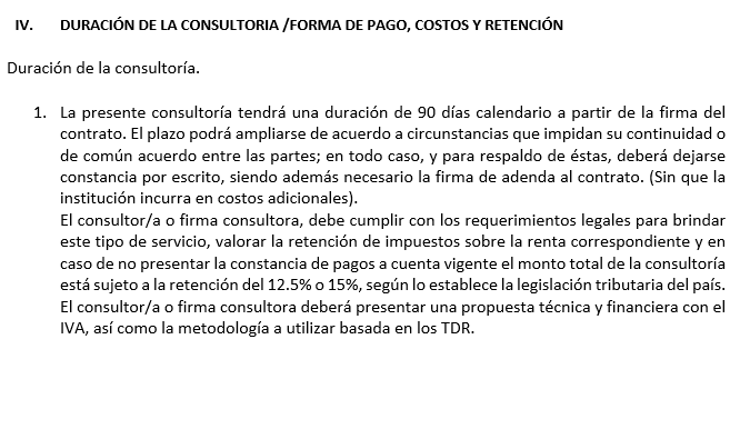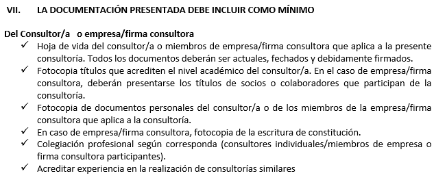 TERMINOS DE REFERENCIA PARA ELABORACION DE CONSULTORIA