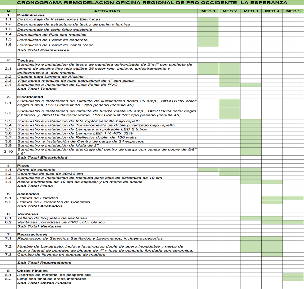Cotización: “Contratación de Servicios de Remodelación de la Oficina Regional La Esperanza, Intibucá del Proyecto Pro-Occidente”