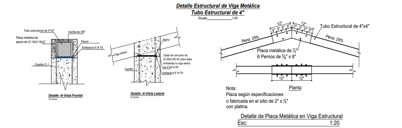 Respuesta: En el caso de la actividad de techo será de canaleta de 2"x4" como clavadores apoyada en las vigas metálicas de tubo estructural de 4"x4".