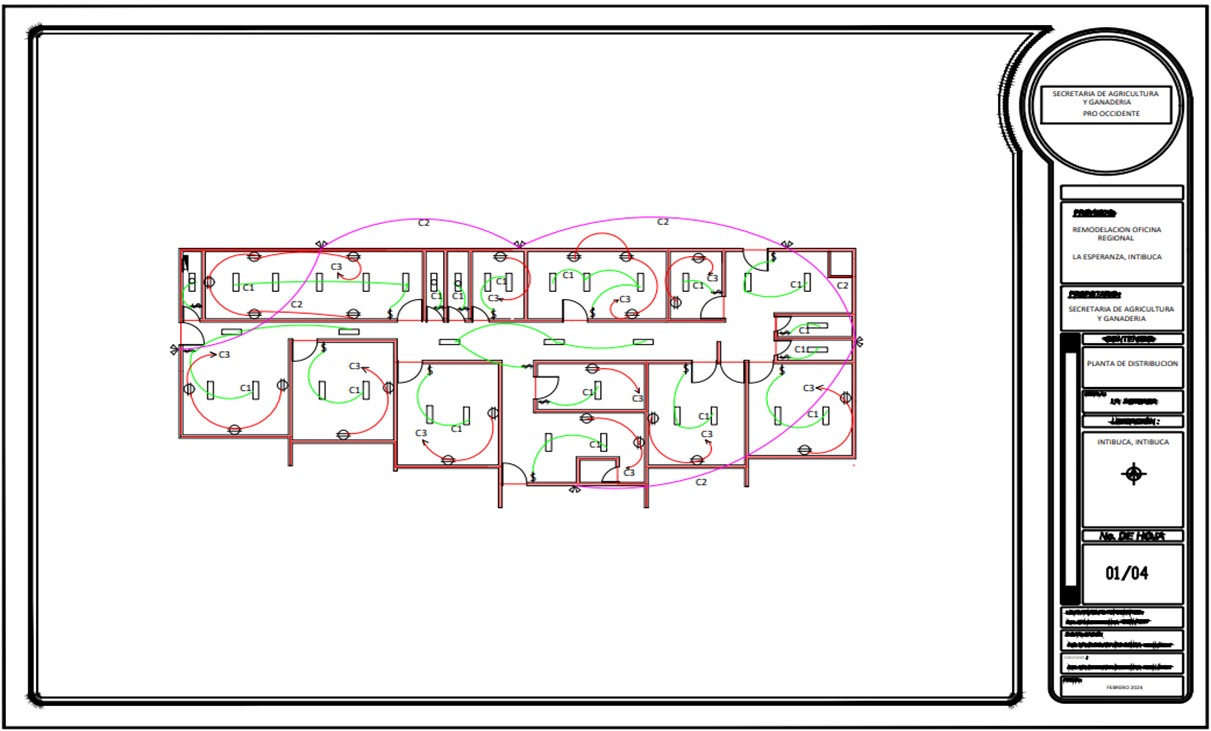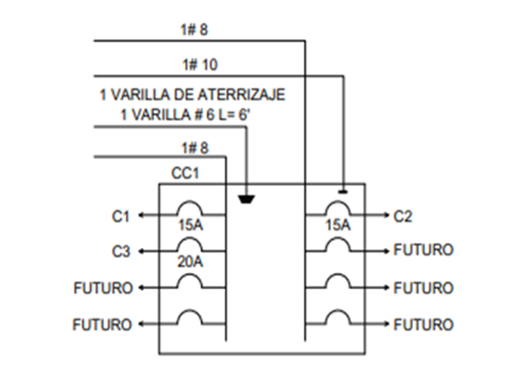 · Revisión y readecuación del sistema eléctrico: Revisión del cableado y cambio de accesorios (interruptores, tomacorrientes) se requiere colocar nuevas lámparas y tomas. En algunas zonas se deben cambiar los circuitos y se propone un solo centro de carga para todo el edificio.